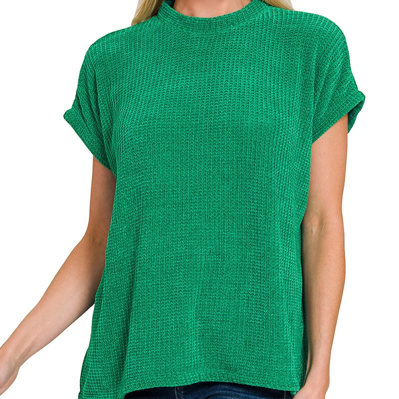 Soft, cozy, and effortlessly stylish — the Chenille Waffle Cap Sleeve Sweater is the perfect blend of comfort and texture. Crafted from plush chenille yarn with a subtle waffle knit pattern, this sweater offers a rich, velvety feel with a lightweight, breathable finish. The cap sleeves add a modern touch, making it ideal for transitional seasons or layering.