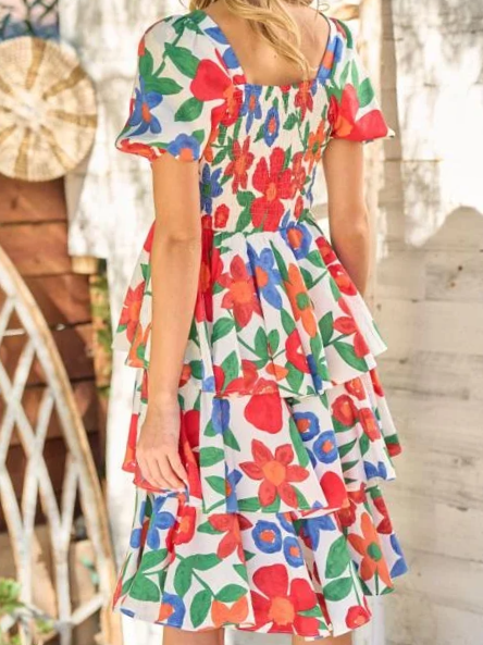 If you're the kind of girl that likes to be an energy-giver and lift everyone's spirits, then this dress is definitely for you! Bright, cheery flowers cover the whole thing!